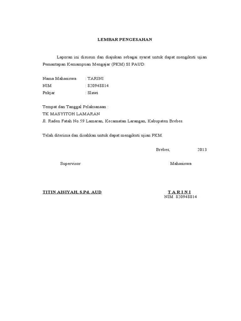 Laporan pemantapan kemampuan mengajar (pkm) nama mahasiswa nim hari/tanggal tempat. 4 contoh laporan pkm ut pgpaud format ms word docx seperti yang telah. 5 4) format jurnal pembimbingan pkm nama mahasiswa : Text of laporan pkm nilawati. Penyusunan laporan tugas akhir semester iv ini tentu tidak lepas dari bimbingan dan arahan .