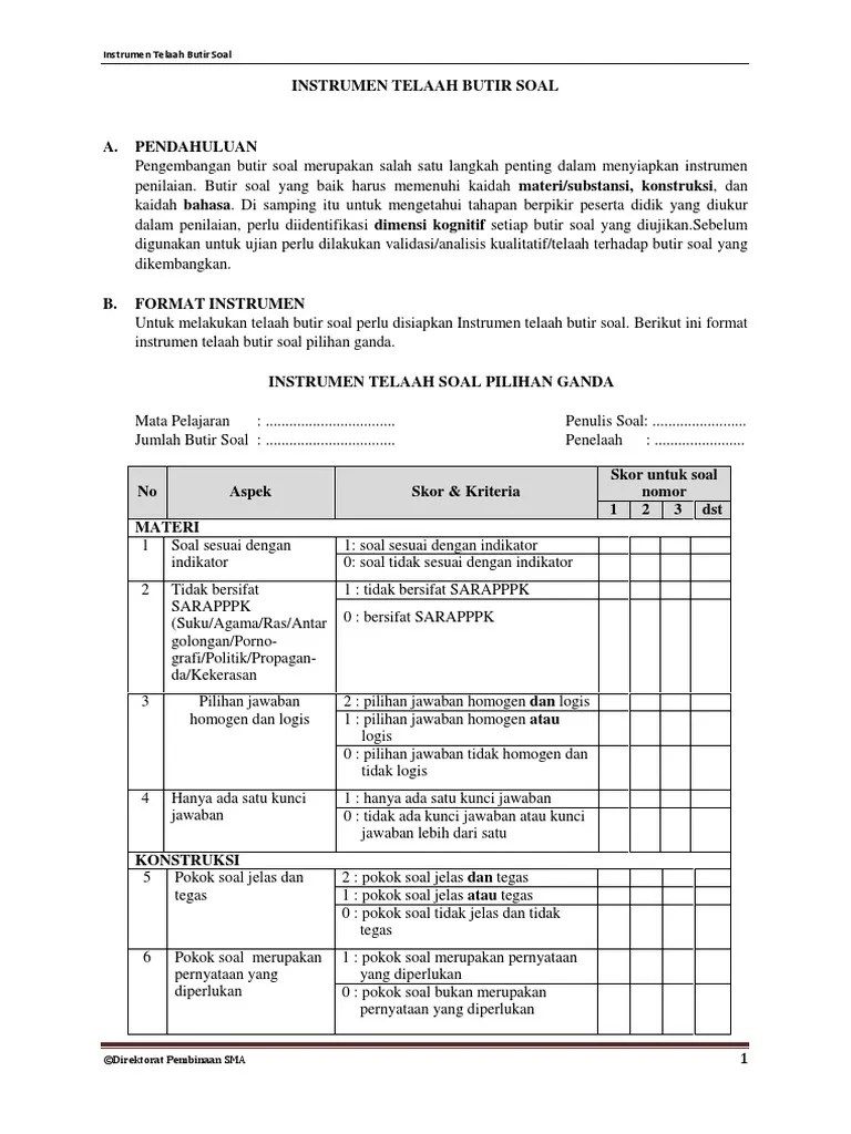 Hasilnya dapat digunakan untuk mengetahui mutu soal dan mutu belajar peserta didik dari analisis hasil ujian. Tes merupakan alat evaluasi pendidikan yang mempunyai peranan penting dalam mengukur prestasi hasil belajar siswa. Peran analisis butir soal guna meningkatkan kualitas butir soal, kompetensi guru dan hasil belajar peserta didik. Telaah soal berorientasi hots materi persamaan garis lurus by lana1vaza. Parepare kelas xi berdasarkan taksonomi bloom revisi anderson. Dengan melakukan analisis butir soal akan melihat apakan soal terlalu mudah atau sedang dan dapat mengetahui kemampuan peserta didik secara tepat. Telaah soal yang dilakukan oleh validator. Jika hampir seluruh peserta testee "gagal. Telaah soal, yaitu bentuk pilihan ganda dan uraian. Terencana untuk mewujudkan suasana belajar dan proses pembelajaran agar peserta didik secara aktif mengembangkan potensi dirinya, masyarakat, bangsa dan. Penggunaan komputer sebagai alat bantu evaluasi . Mengukur suatu prilaku tertentu pada peserta didik dengan menggunakan skala pengukuran tertentu. Pertanyaan yang berhubungan dengan bahan kajian.